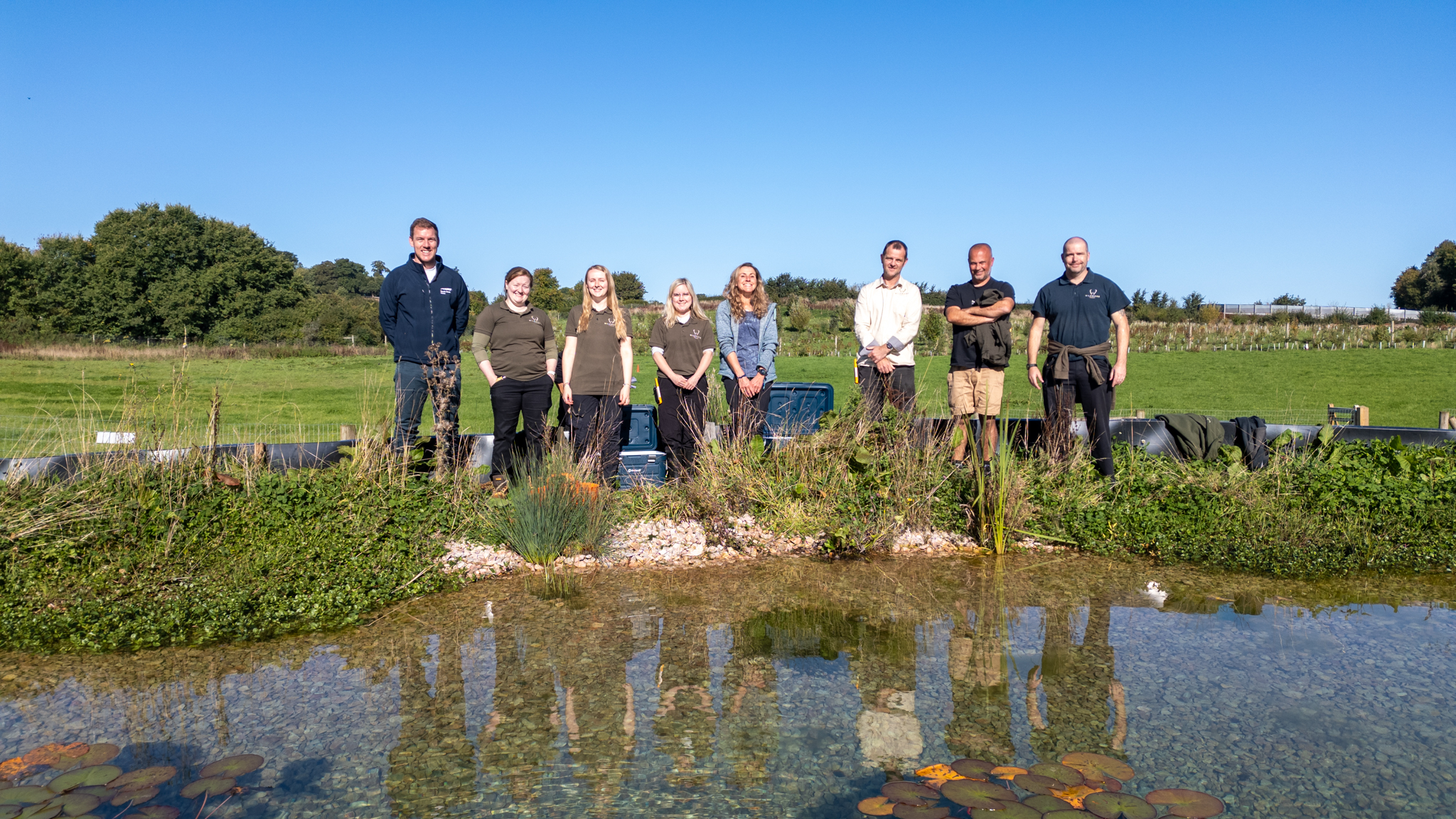 One of the key stages in preparing the ark site for release involved ensuring that environmental conditions were perfect for crayfish. Temperature and water quality were monitored weekly. The site experienced higher-than-ideal temperatures during the hot, dry summer, although water levels remained stable. To mitigate elevated temperatures, shade covers were installed over the water until the growth of water lilies could provide sufficient natural shade.