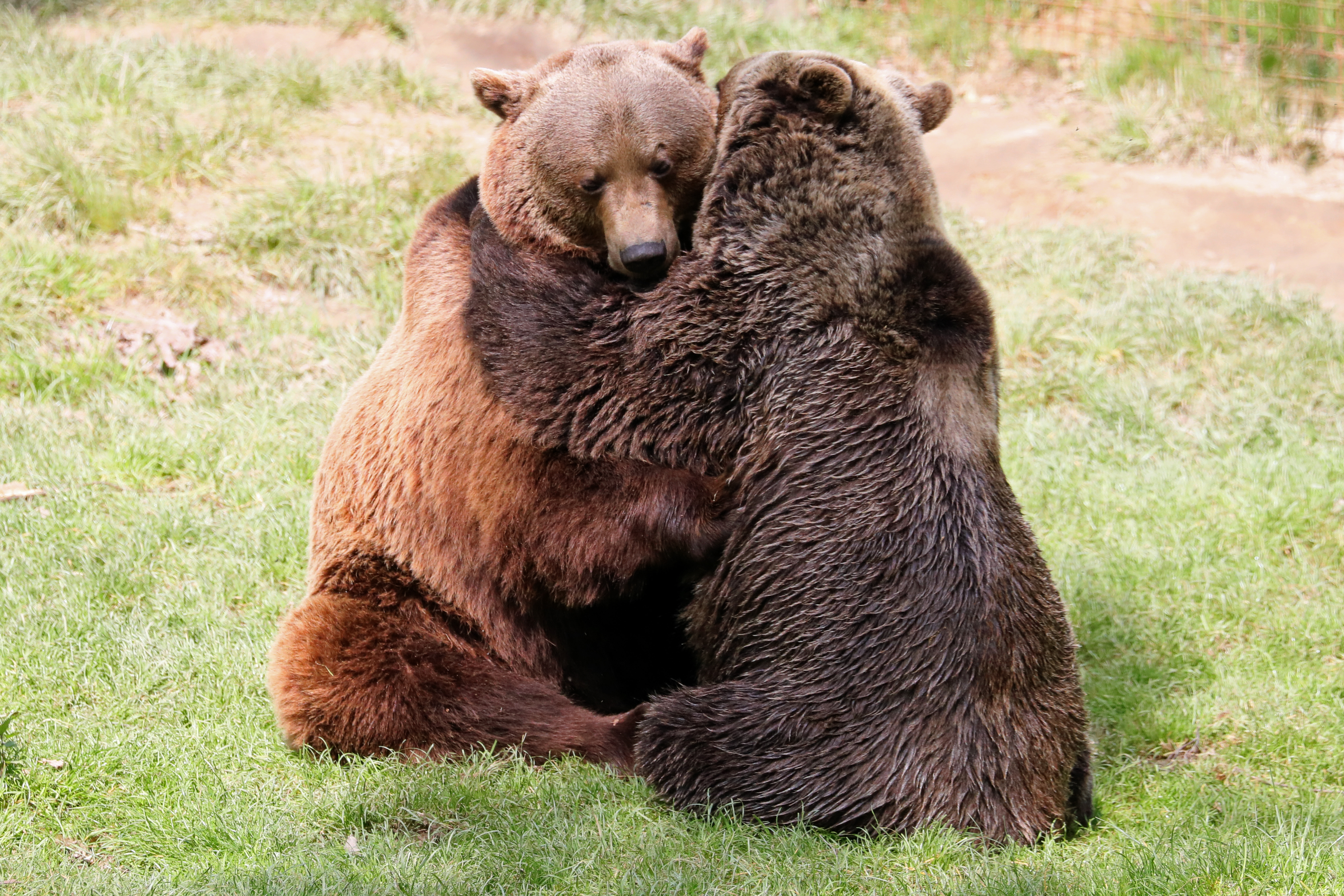 Up until this point, they had only seen each other through a fence, so when it came time to let them both into the same enclosure, the keepers waited anxiously as Fluff and Scruff met each other properly for the first time. With a huge sigh of relief, the two bears embraced and immediately began to explore their new home together.